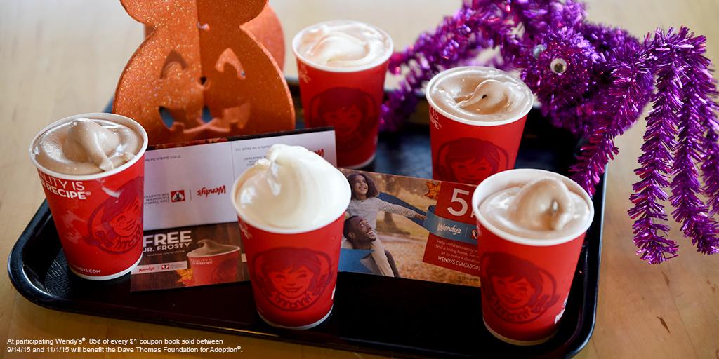 Wendy's Jr. Frosty Halloween Coupon Books Support Adoption Efforts Visit your local Wendy's® to purchase a Jr. Frosty™ Halloween Coupon Book* for $1, which benefits the Dave Thomas Foundation for Adoption! *Coupon book may contain coupons for 5 or 10 free Jr. Frosty™ treats. Prices and participation may vary.